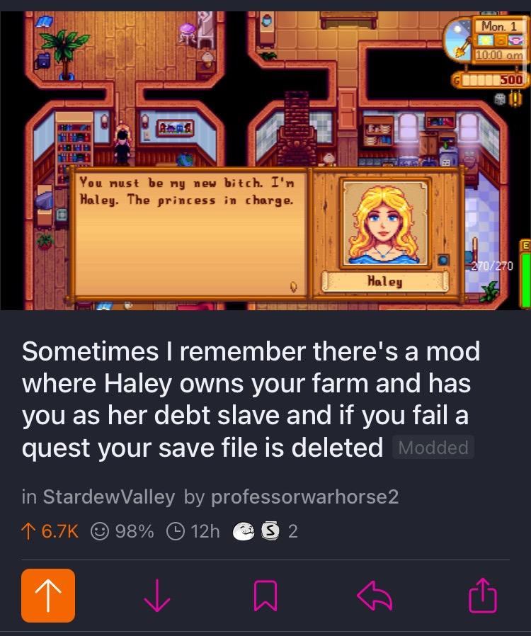 So the developer of Stardew Valley, Concerned Ape, is the Tame Impala of developers in that he’s just one guy, and it’s fucking incredible to me that it’s just one guy. But he also grew up playing Harvest Moon and other farming sims and was like, I want to make one, but good. I started playing Stardew Valley pretty close to when it came out, but it already had a huge community around it.